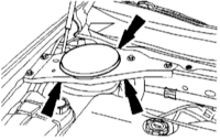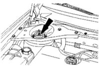 В моторном отсеке отожмите запорную крышку правого подшипника амортизационной стойки (показана стрелкой).