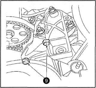 9. Затянуть два болта крепления правой опоры двигателя к головке блока цилиндров. Момент затяжки 45 Н-м.