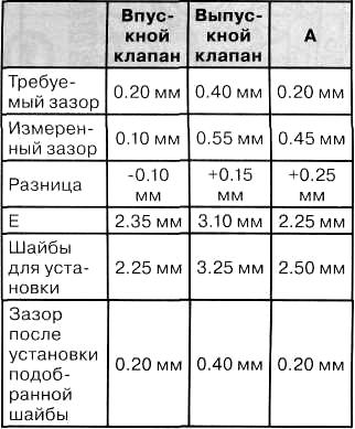 6. Измерения должны соответство вать стандартным значениям зазоров: • впускные клапана 0.20 мм; • выпускные клапана 0.40 мм; • допустимое отклонение от раз мера ±0.05 мм.
