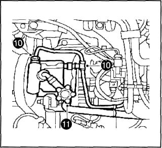 1. Подсоединить к насосу гидроусили теля расширительный бачок, используя специальный инструмент.