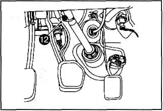 1. Снять рулевую колонку, затем отвести назад ковровое покрытие. Высвободить