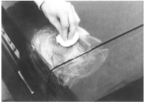 Уже через некоторое время действия образуется сухой белый осадок, который следует отполировать ватным тампоном круговыми движениями. При сильно изношенном лаковом покрытии будьте осторожны на кромках: не обрабатывайте слишком долго одно и то же место, можно даже содрать краску до слоя грунтовки.